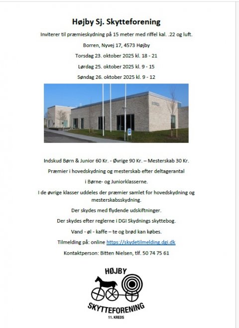 OBS - PRÆMIESKYDNING I HØJBY SKYTTEFORENING