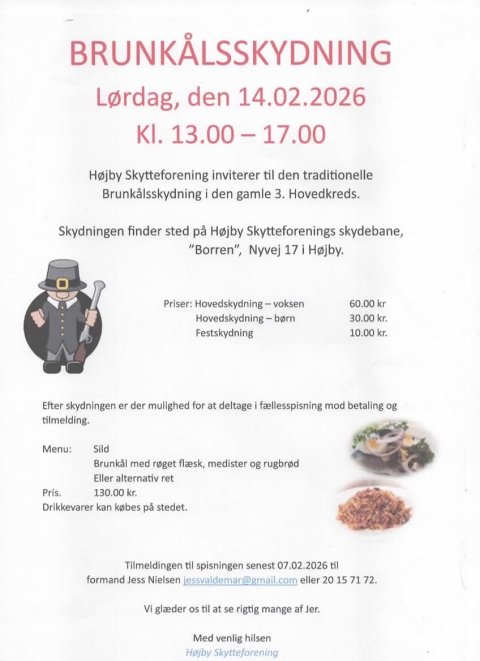 Der er ikke skydning torsdag den 15.1.2026 på grund af arrangement i hallen .